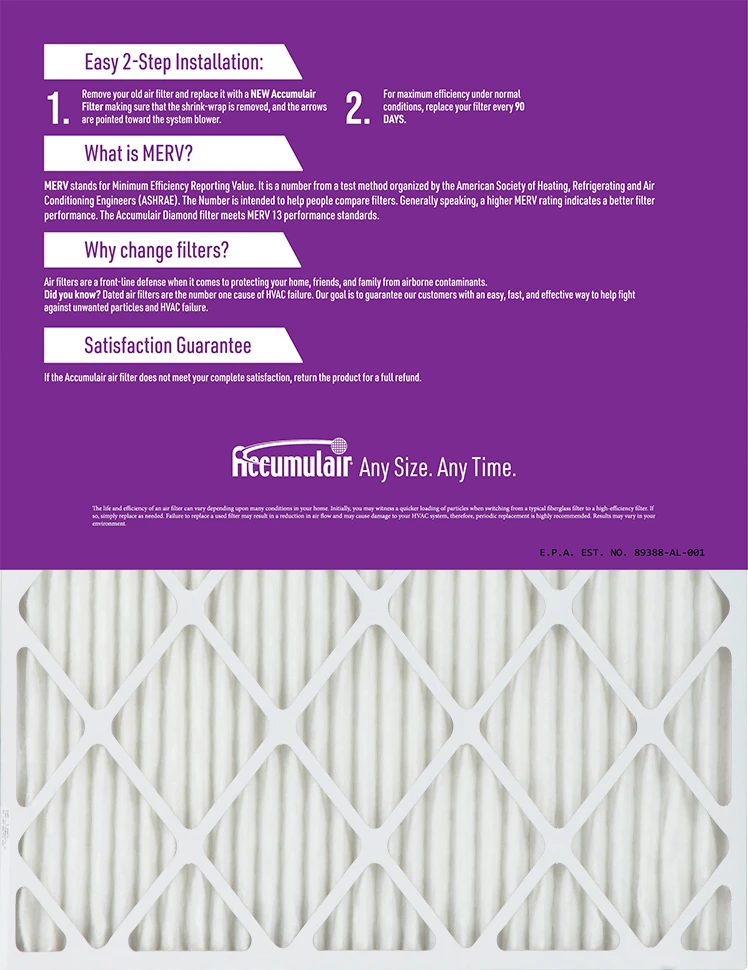 19x21x2 (18.5×20.5×1.75) Accumulair Diamond Filter MERV 13