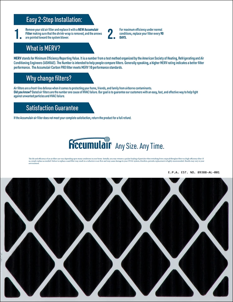 23x25x2 (Actual Size) Accumulair Carbon MERV 10 Odor Eliminating Filter